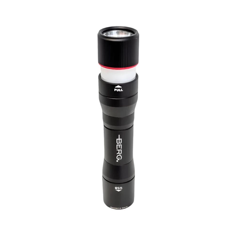Bergin ladattava 20W LED-taskulamppu on suunniteltu tuomaan valoa kaikissa tilanteissa, olitpa sitten ulkoilemassa, työskentelemässä tai hätätilanteessa. Tämä monikäyttöinen taskulamppu toimii myös lyhtynä – lampun yläosaa nostamalla lyhtyosa tulee esiin, ja pohjan magneetti mahdollistaa sen kiinnittämisen metallipinnoille, vapauttaen kätesi muihin tehtäviin. Tehokas 1800 lumenin valovirta takaa kirkkaan ja pitkälle kantavan valaistuksen, ja taskulamppu tarjoaa kolme erilaista valotilaa tarpeidesi mukaan.